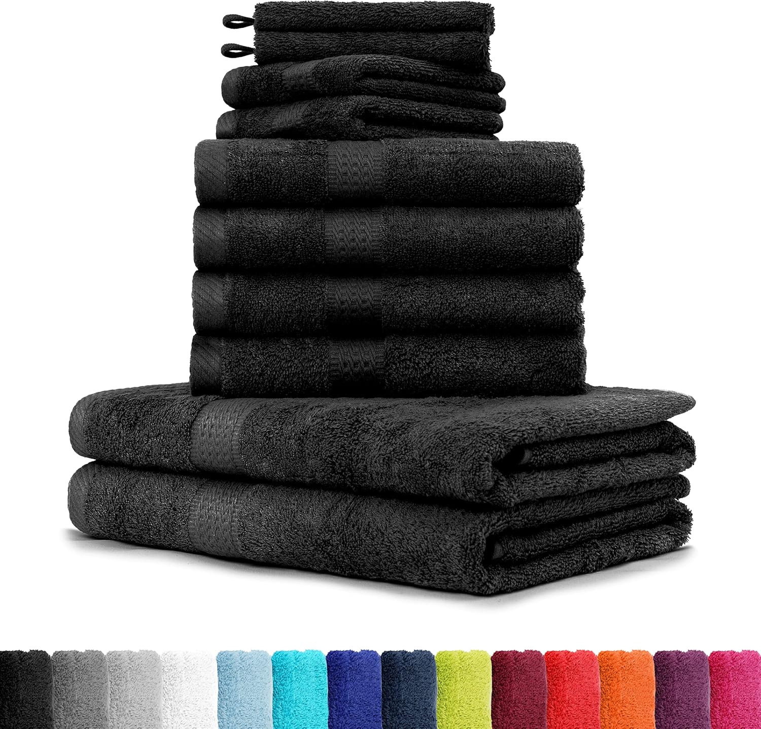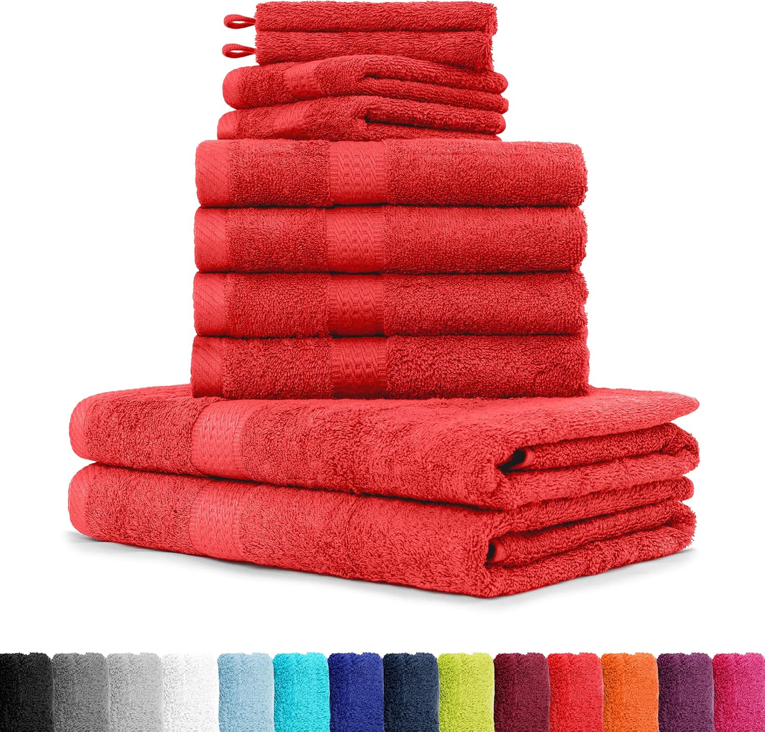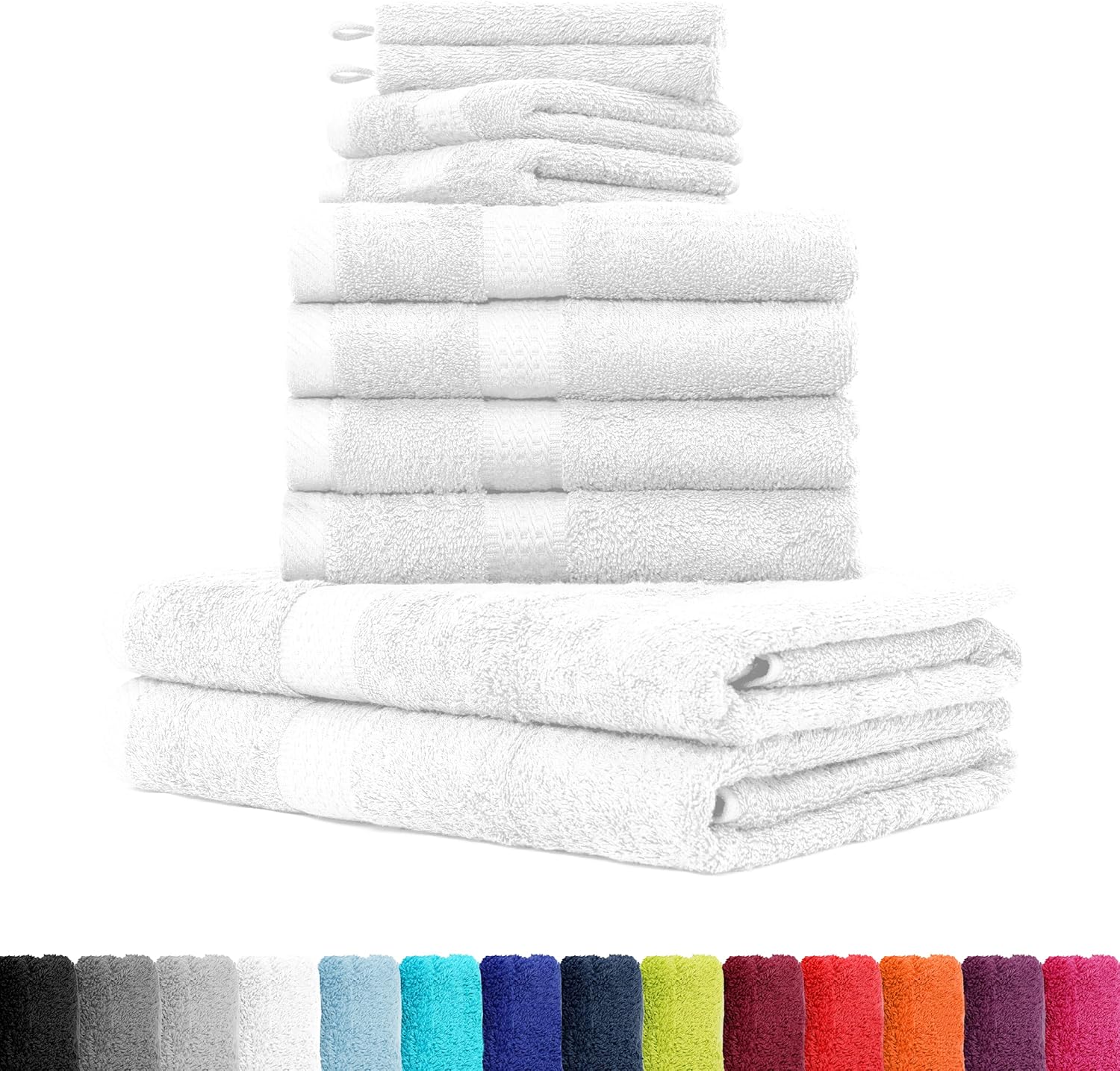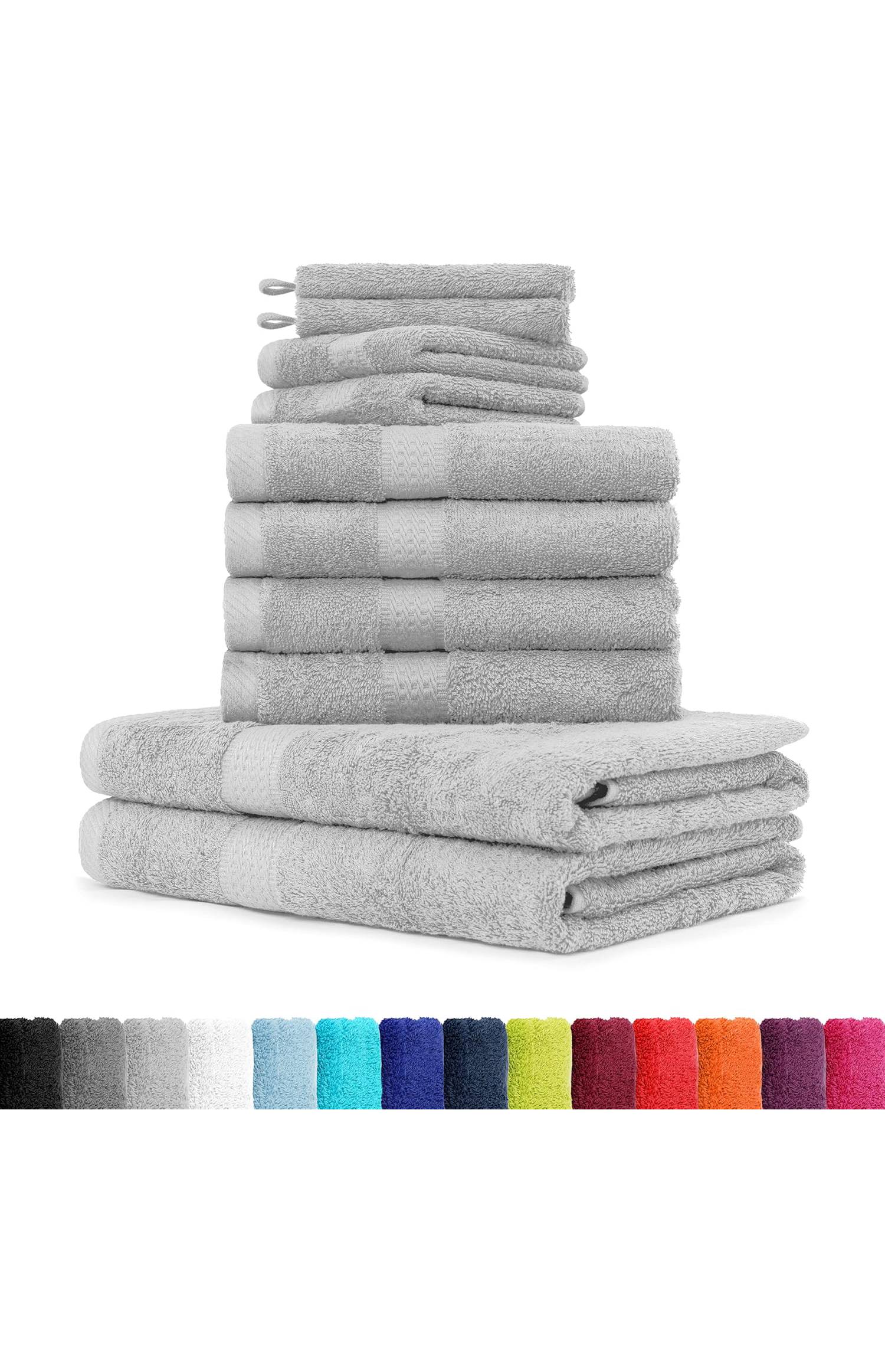 Handtuch Komplett-Set - Frottee-Handtücher mit Aufhängeschlaufe 4X Handtuch, 2X Duschtuch, 2X Gästetuch, 2X Waschhandschuh Öko-Tex Made in Green Zertifiziert - 10er Pack