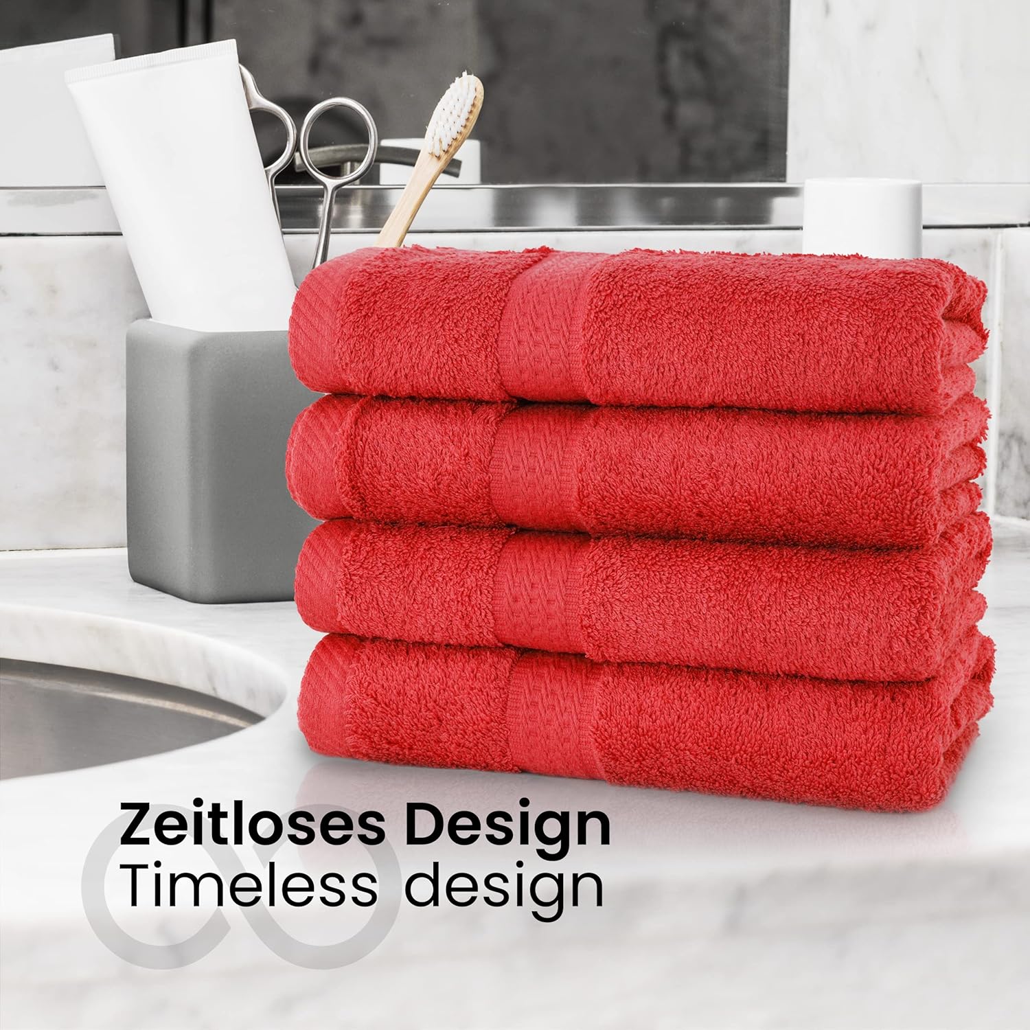 Alle Teile sind mit praktischen Aufhängeschlaufen versehen und lassen sich bequem aufhängen. Das Frottee-Material ist besonders weich, saugfähig und hautfreundlich – ideal für den täglichen Gebrauch.