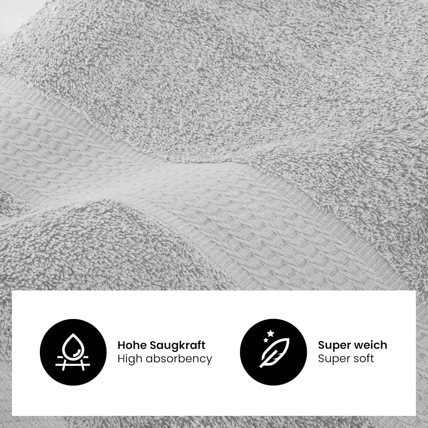 Bringen Sie Komfort und Qualität in Ihr Badezimmer mit unserem 10-teiligen Handtuch-Komplett-Set aus hochwertigem Frottee. Das Set besteht aus: