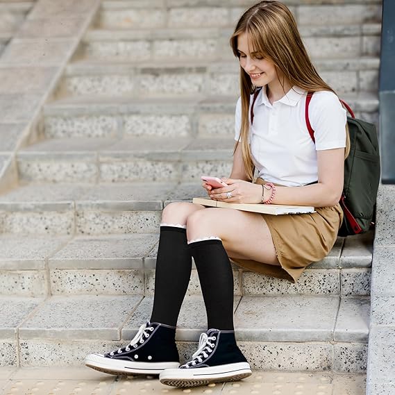 Diese 4 Paar Damen-Kniestrümpfe sind nicht nur modisch, sondern auch funktional – ideal für Mädchen und Frauen im Alltag oder bei besonderen Aktivitäten. Die extra lange Form bietet angenehme Wärme und Schutz, während die spezielle Blasen-Öffnung für gezielte Belüftung und mehr Komfort sorgt.